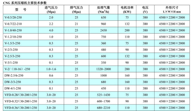 CNG壓縮機為往復活塞式壓縮機,是天然氣加氣站必配的設備。該系列壓縮機設計為整體撬裝式,結構緊湊,運行平穩,安裝和維護方便。