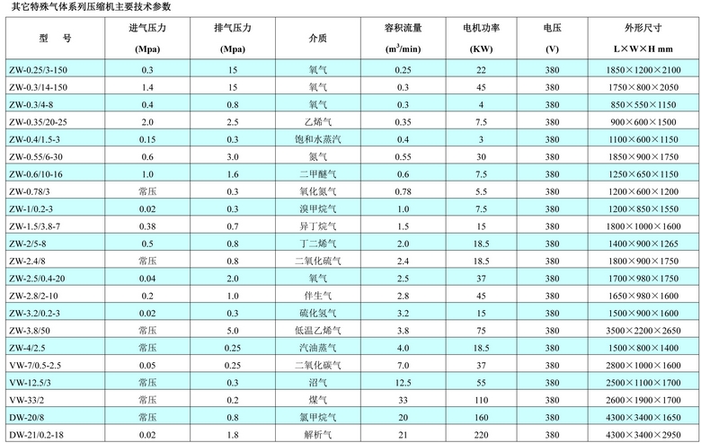 為了滿足用戶的不同需求,公司自行研制生產了各類特殊氣體壓縮機。該系列產品具有性能優良、運轉平穩、操作和維護方便等特點。該系列產品主要應用于石油、化工、電力、冶金等工藝流程中的增壓、輸送和回收等方面。